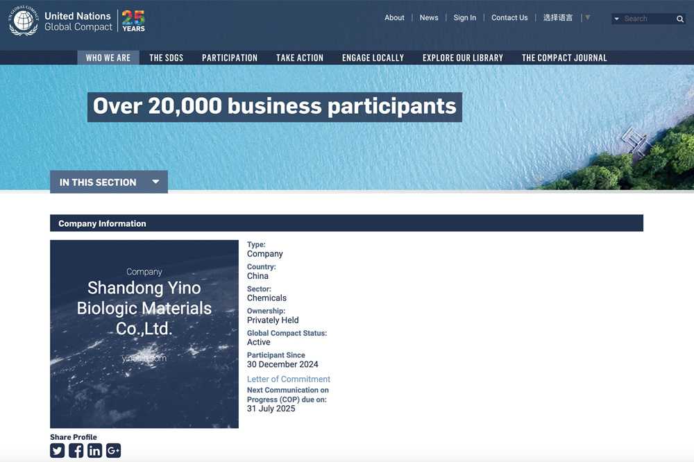 近日,山東一諾生物集團正式加入聯(lián)合國全球契約組織(UNGC)——全球最大的可持續(xù)發(fā)展倡議平臺,承諾支持并全面踐行有關(guān)人權(quán)、勞工、環(huán)境和反腐敗四個領(lǐng)域的全球契約十項原則。這不僅是一諾生物集團國際化、全球化發(fā)展進程中的一個重要里程碑,也是一諾生物推動全球可持續(xù)發(fā)展的不懈努力贏得國際社會廣泛認可的體現(xiàn),更是一諾生物踐行“讓一諾更綠色,讓地球更美好”發(fā)展理念的又一次深入行動。